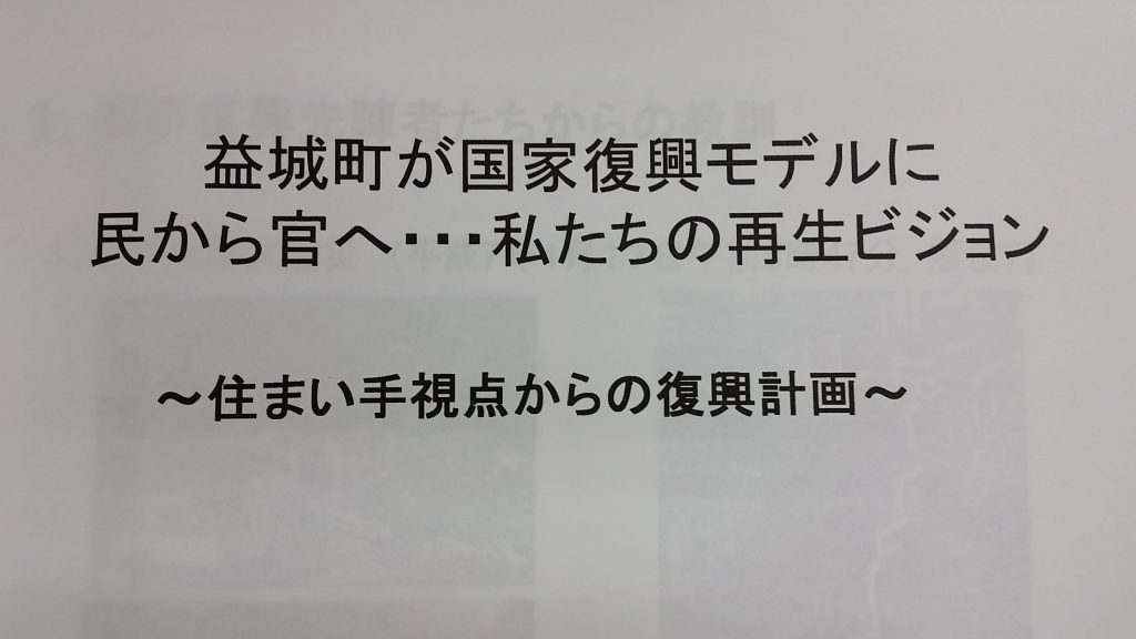 2018年02月19日( 月 ) 復興計画の勉強会に参加しました! 商工会館で行われた【益城町が国家復興モデルに】民から官へ・・・私たちの再生ビジョン。住まい手視点からの復興計画の勉強会に参加いたしました。